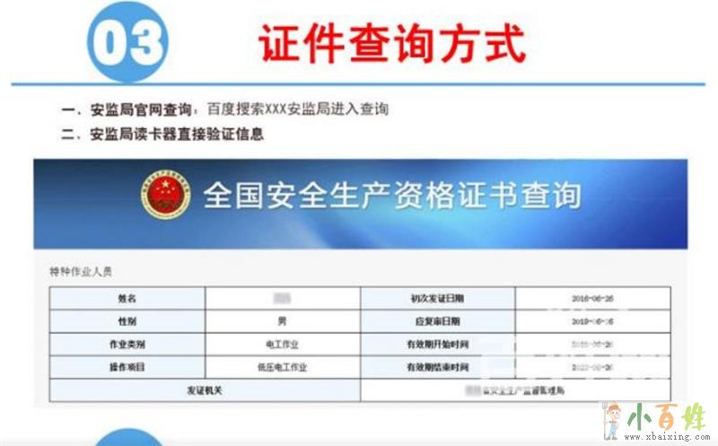由当地安全生产监督管理局颁发,少数地区会有高压和低压的分别,大部分地区不分。主要证明你具有此工种安全操作的知识和能力,每3年一审小百姓网www.xbaixing.com。此证全国通用,网上查询一般是发证地省市安监局网站查询。同时也可以到市一级安监局行政服务窗口用读卡器读取操作证相关资料验证真伪。